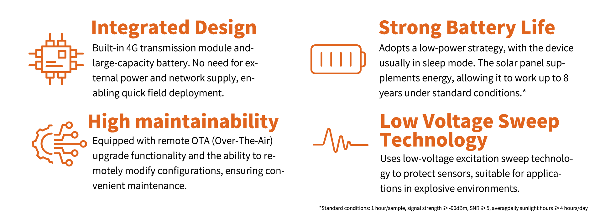 One data logger can connect to one vibrating wire sensor for data acquisition and upload. Relevant parameters can be configured via a local App or remotely; meanwhile, it supports remote program upgrade and remote monitoring of device status, featuring convenient operation and easy maintenance. It is suitable for various distributed monitoring scenarios such as civil engineering structural health monitoring, natural disaster prevention and control, and environmental monitoring.