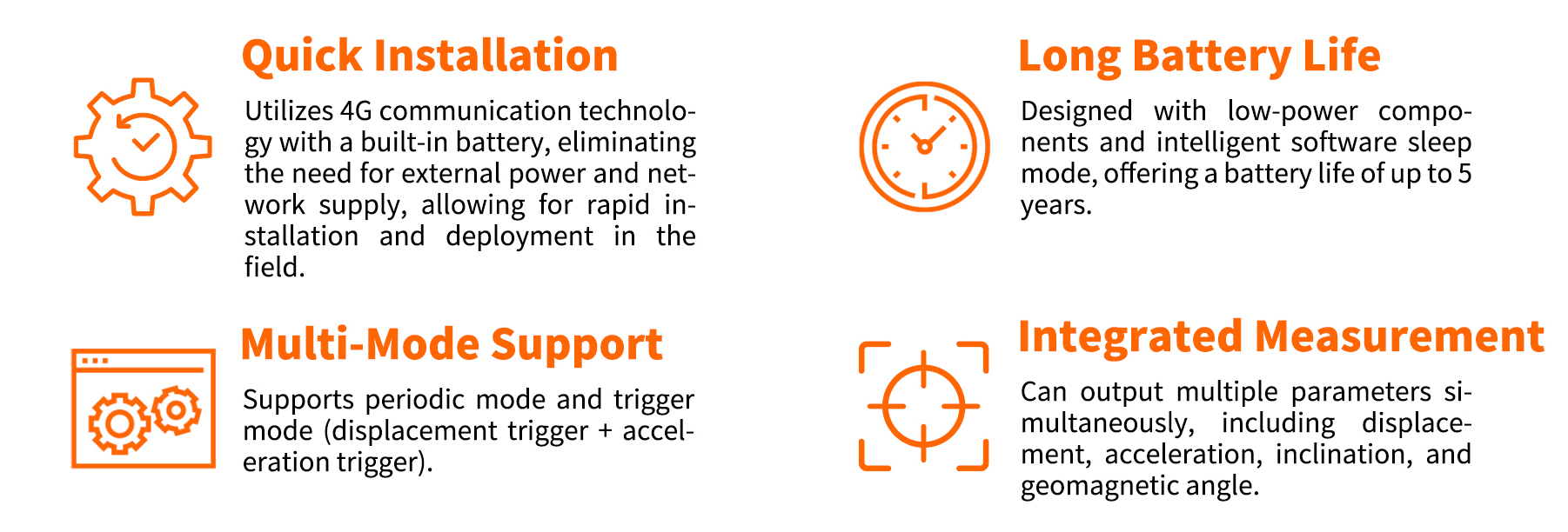 This product features an integrated design with a built-in battery and 4G communication module. It is a multifunctional, low-power automated monitoring instrument that can be quickly installed and deployed in the field for long-term monitoring. It is widely applied in long-term automated monitoring of structures such as landslides, bridges, and buildings.