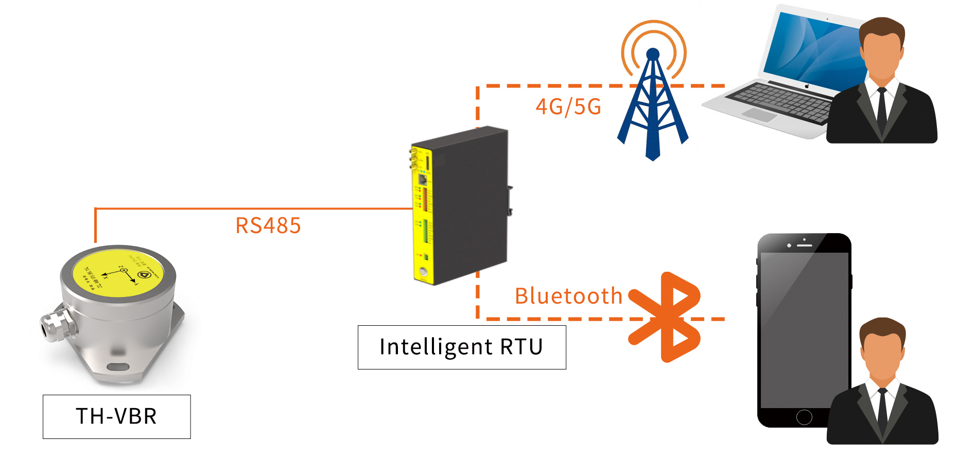 The triaxial vibrationmeter is equipped with a built-in industrial-grade MEMS acceleration sensor that outputs accurate tri-axial acceleration values, and can also work with data acquisition units and platforms to output vibration characteristic values such as fundamental frequency and amplitude.