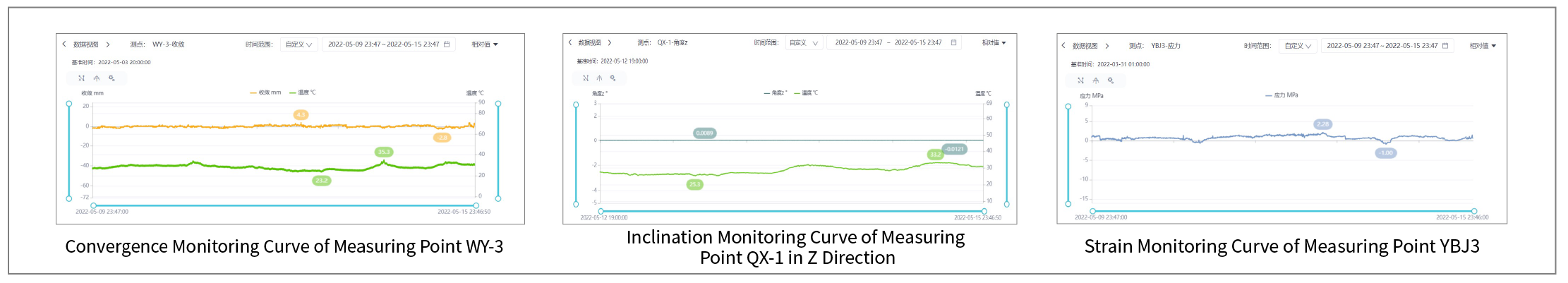 Since the equipment has been in operation, the monitoring data has remained stable. Both the vertical displacement and horizontal displacement values are within ±2mm, and the flexible support structure is in an overall stable state.